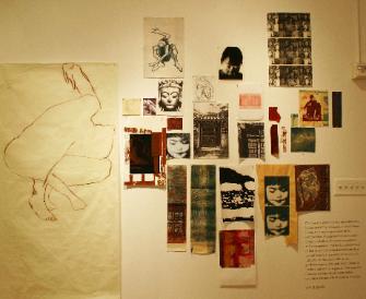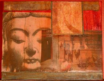 The un-named One series of large scale prints was begun in summer 2001 as an exploration into the myth of Persephone and her descent into the underworld. Then the events 9/11 took place. The work was completed as a memorial to the thousands of anonymous people who were lost in the underworld of burning steel. I have recently begun to re-work these images in terms of the un- named and faceless people who are caught in the violence of war or political situations beyond their control. Are they sisters, fathers, mothers or children? How much loss they must have experienced. In my own life, the birth mothers of my daughters, though never to be known, are always present for me like ghosts of memories. In her introduction to Karin Evans’ book, “Lost Daughters of China”, Anchee Min takes on the role of stern Ai-yi or auntie, telling the “raw truth” of their histories. She tells the lost daughters that for their birth mothers, who for whatever tragic reason had to relinquish them, they will be forever “a broken arm hidden inside the sleeve.” Gardens and Gateways 2001-2014 This body of work includes a collection of inter-related mixed media books, paintings and prints created beginning around 2000 and continuing to the present. Each of the included segments interweaves my areas of interest as an artist. My process is to employ my own drawings, photographs and prints in my work. I also use collected materials, ephemera from previous projects, and found images. Media include ink, paint, wax, sewing, collage and found objects. Objects like tin niches (small places of worship) seem to echo the temple and garden entryways I have photographed and become a kind of gateway within a piece. As a printmaker I have always been interested in the technical overlay of print methods and images. I like to experiment with ways in which printmaking media may begin to come together with painting. As well, the concept of the artist book as an object held in the hand or viewed closely thus creating an intimate interaction between artist and viewer, are all at the center of my visual exploration. Buddhism On my first trip to China, I brought along a small book of one hundred poems by Han-shan from the T’ang Dynasty. These writings by the reclusive, yet deeply socially aware Buddhist monk who is thought to have lived anywhere between 627 and 750 A.D. I have returned to this volume many times. Here translated by Burton Watson is #29 I spur my horse past the ruined city; The ruined city, that wakes the traveler’s thoughts: Ancient battlements, high and low; Old grave mounds, great and small. Where the shadow of the single tumbleweed trembles And the voice of the great trees clings forever, I sigh over all those common bones— No roll of the immortals bears their names. Han-shan’s poem echoed as I visited famous spots such as Xian’s Terracotta Warriors, the Forbidden City, and the Great Wall and most strongly when walking down an unknown street in a city or looking out a train window across fields lit with many little fires from farmers’ brush piles. It was the unnamed souls of Han-shan’s poems, whose presence is strong in these places that have resonated most deeply for me. China’s history in the recent centuries makes this sentiment more poignant. Ancient images of the Buddha and the goddess, Guan Yin, who gives solace to the hurt and provides the blessing of children, evoke a place of contemplation and peace. As well I find the ever- transforming garden to be a compelling and hopeful visual metaphor. The works I have created contain layered levels, like pages, that become gateways to new images the same way garden or temple gateways invite exploration and evoke an ancient place often visited perhaps over multiple centuries by anonymous wanderers.